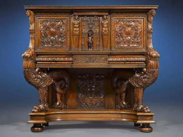 到16世紀(jì)的文藝復(fù)興時期,設(shè)計師們對精致的雕刻有著極大的追求,所以在材料上部分的放棄了粗粒度的橡木,并開始使用核桃木等低密度的材料,使得雕飾更加精細(xì)。這時候的雕刻更多的是關(guān)于神話、寓言和歷史題材,同時對稱和均衡是當(dāng)時的指導(dǎo)原則。家具的細(xì)節(jié)包括有藤蔓、花紋、渦卷、鮮花等,變得越來越復(fù)雜。同時那一時期還流行鑲嵌,材料多為象牙和骨頭,有時還用黃銅、鍍金等。