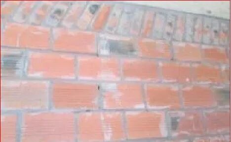 【防治措施】磚砌搭接長度應(yīng)大于磚塊1/3長度,砌體灰縫應(yīng)飽滿、橫平豎直,雙面勾縫;灰縫的砂漿飽滿度不得低于80%;砌筑中不得出現(xiàn)瞎縫、透明縫。