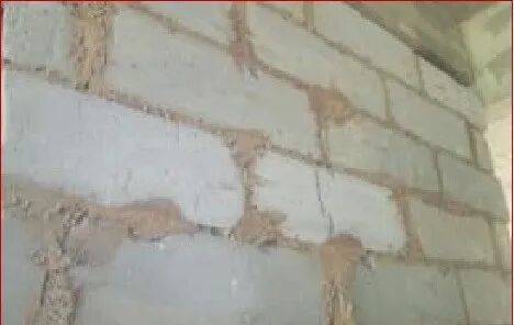 【防治措施】首先對原材尺寸偏差的進行挑選,砌筑前先根據(jù)尺寸控制線進行布線控制,每皮砌塊砌筑前先用靠尺檢查下皮砌塊表面的平整度,不平整處用磨砂板磨平,砌筑時需用水平尺和橡皮錘時時控制平面的水平和立面垂直度。