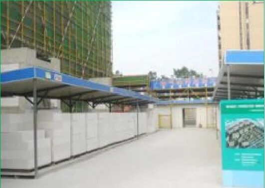 【防治措施】砌塊堆放必須“上蓋下墊”,即:上方搭設(shè)防雨棚;下方墊木方有效排水。加強材料運輸環(huán)節(jié)控制,制作方正實用的運輸小車,控制每次運輸數(shù)量,以有效控制破損率,嚴禁采用翻斗車。?