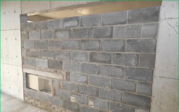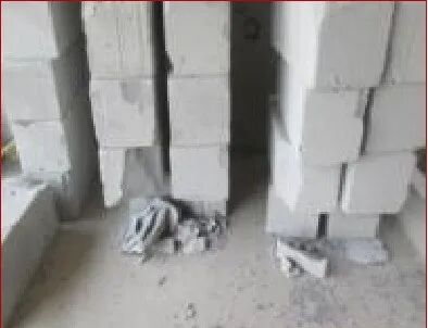 【典型問題】砌塊尺寸偏差過大,斷磚上墻,砌筑時未實時對砌體平整度及垂直度進行控制。