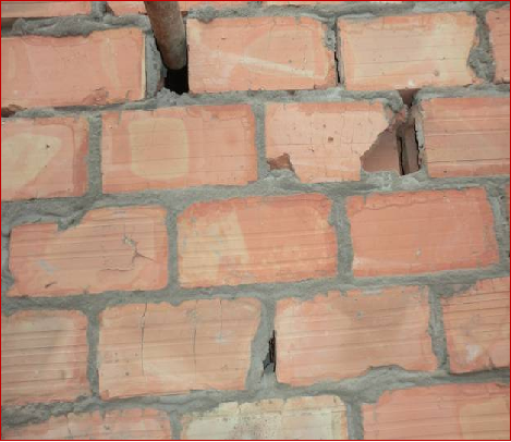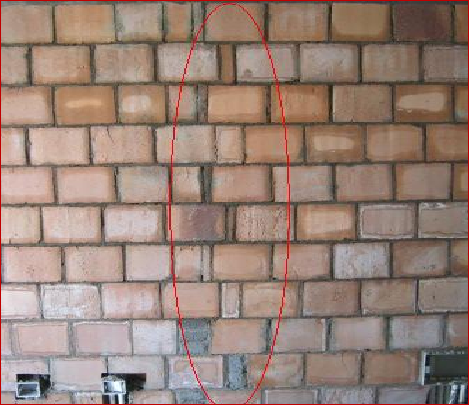 【典型問題】砌筑搭接不足1/3,斷磚上墻,灰縫不飽滿,存在透光縫。