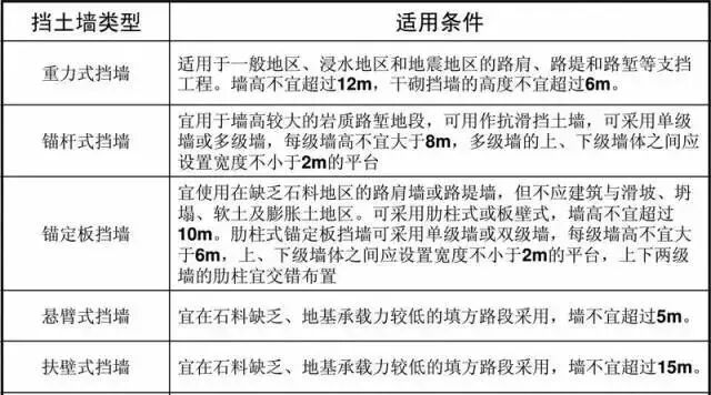 包括懸臂式擋土墻和扶壁式擋土墻兩種;一般墻高6m以內(nèi)采用懸臂式,6m以上采用扶壁式。
